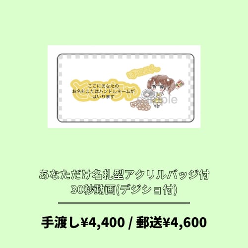 ①あなただけ名札型アクリルバッジ付30秒動画(デジショ付)手渡し¥4,400 / 郵送¥4,600
